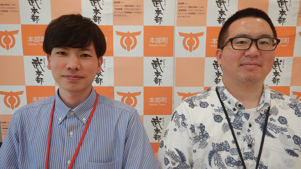 まちを象徴する海と山をキーワードに環境保全に取り組む本部町で、企業版ふるさと納税の担当部署である総務課のお二方、主任主事の伊禮 慧(いれい さとし)さんと主事の比嘉剣児さんにお話をお聞きしました。まちの未来を考え選択した道が、大切な自然を守る活動であったことがわかる、思いのこもったものになりました。