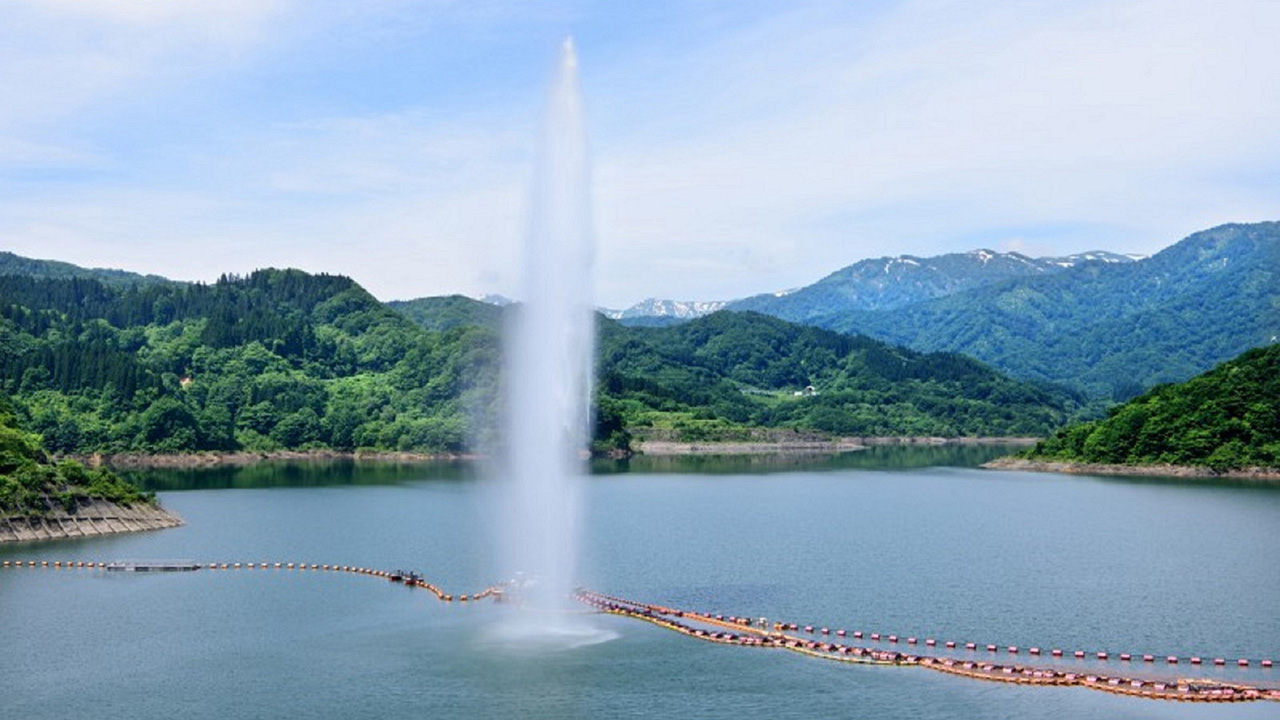 西川町は、月山、羽黒山、湯殿山からなる「出羽三山」の麓に広がる自然豊かな町です。町内を寒河江川が流れ、イワナやヤマメ、アユなどの釣りが楽しめます。また、全国有数の豪雪地帯として知られ、月山では全国でも珍しい「夏スキー」を楽しむことができます。