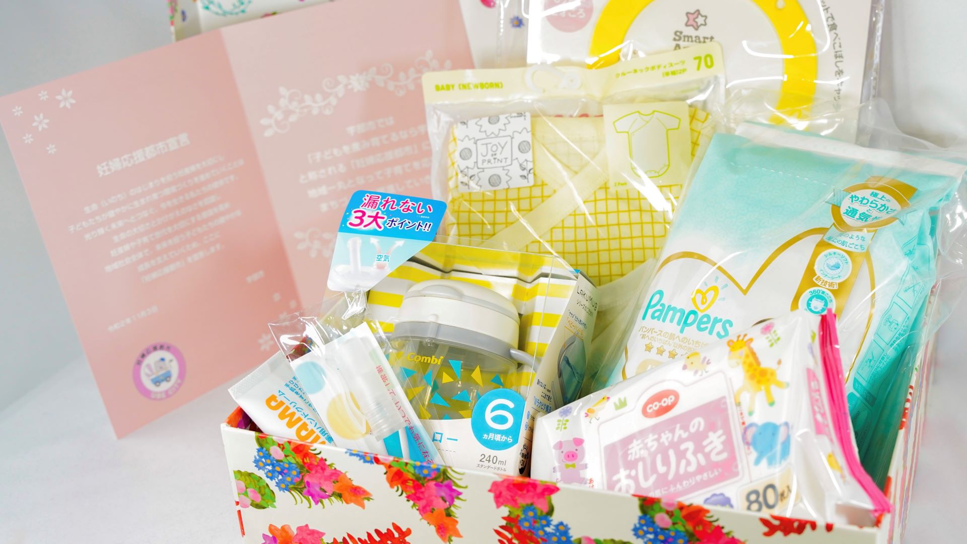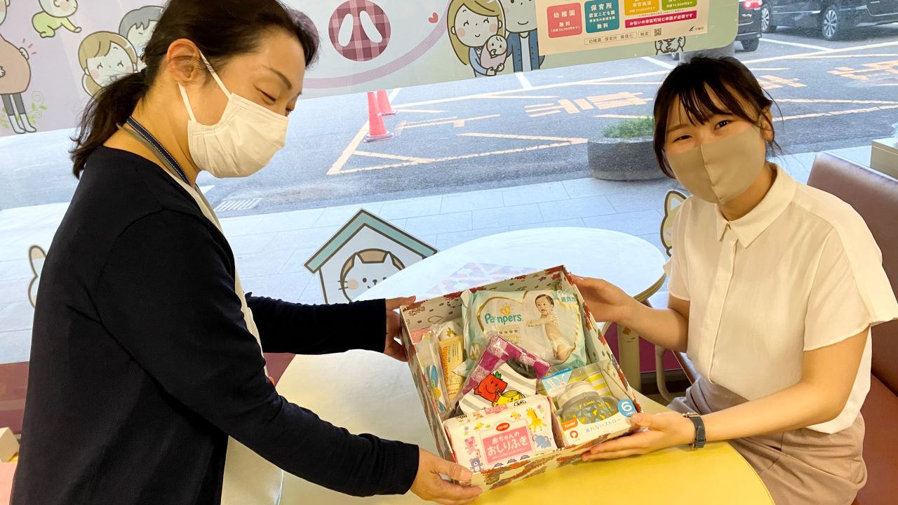 この「赤ちゃん誕生おめでとう箱」には、子育て家庭を応援する企業や団体などで構成された「うべ妊婦・子ども応援団」から提供された育児用品など、地域やプロジェクトに賛同いただいた企業が一体となって応援していきたいという気持ちがたくさん詰まっています。
