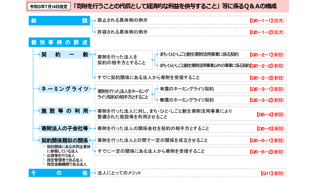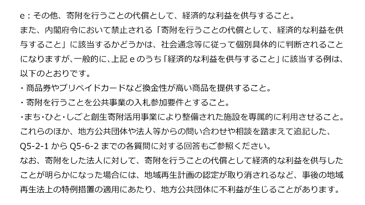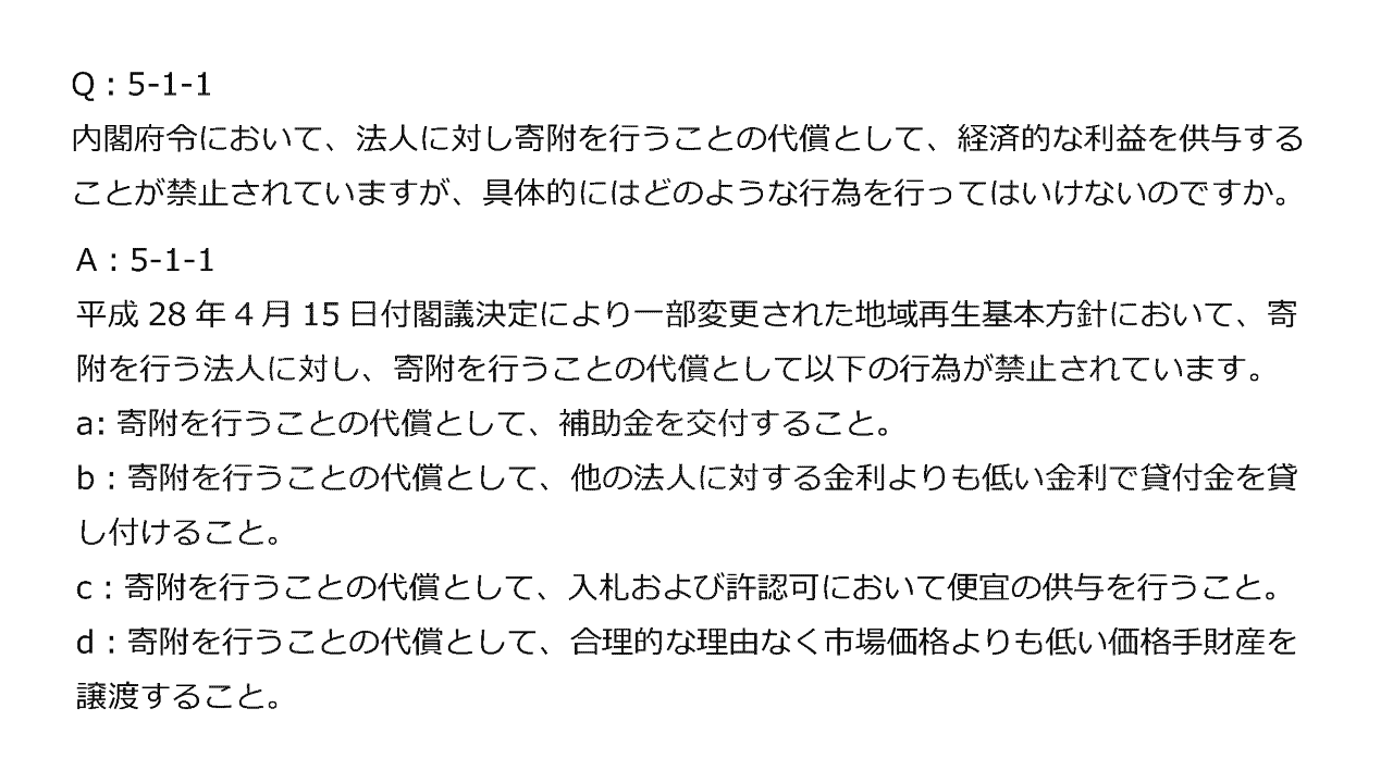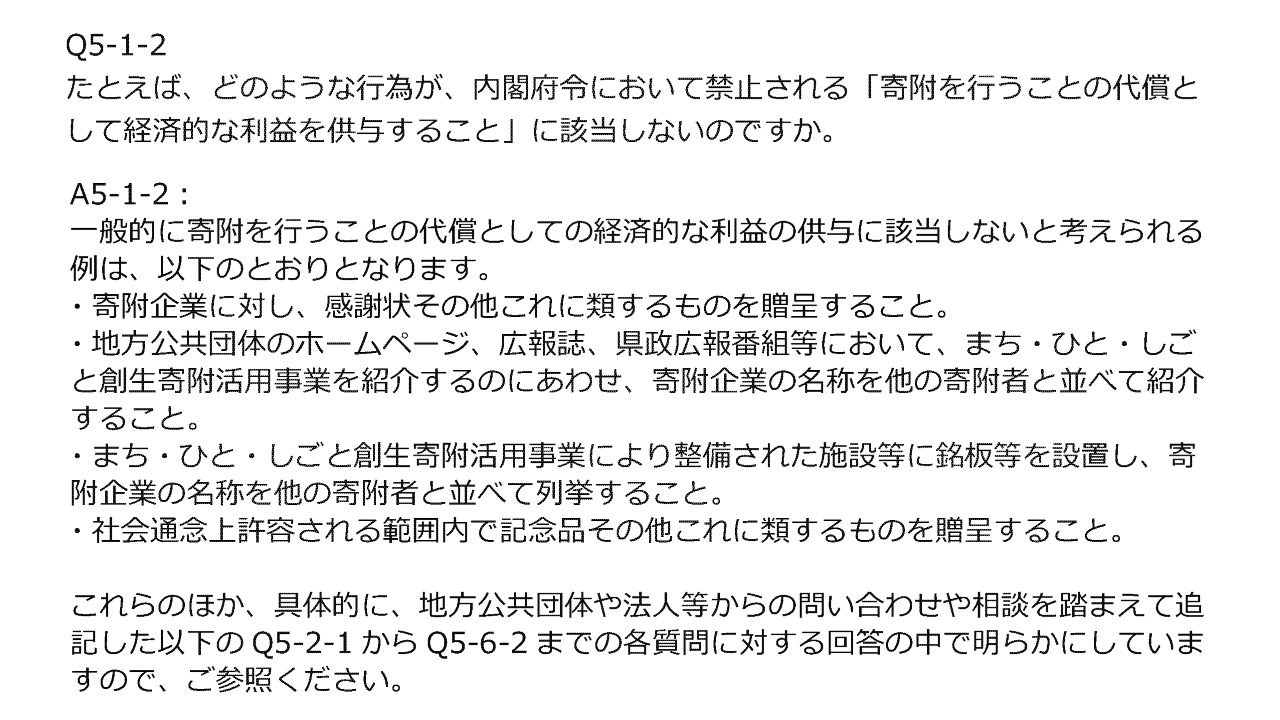 企業版ふるさと納税ポータルサイト「寄附を行うことの代償として経済的な利益を供与すること」に係るQ&Aの構成