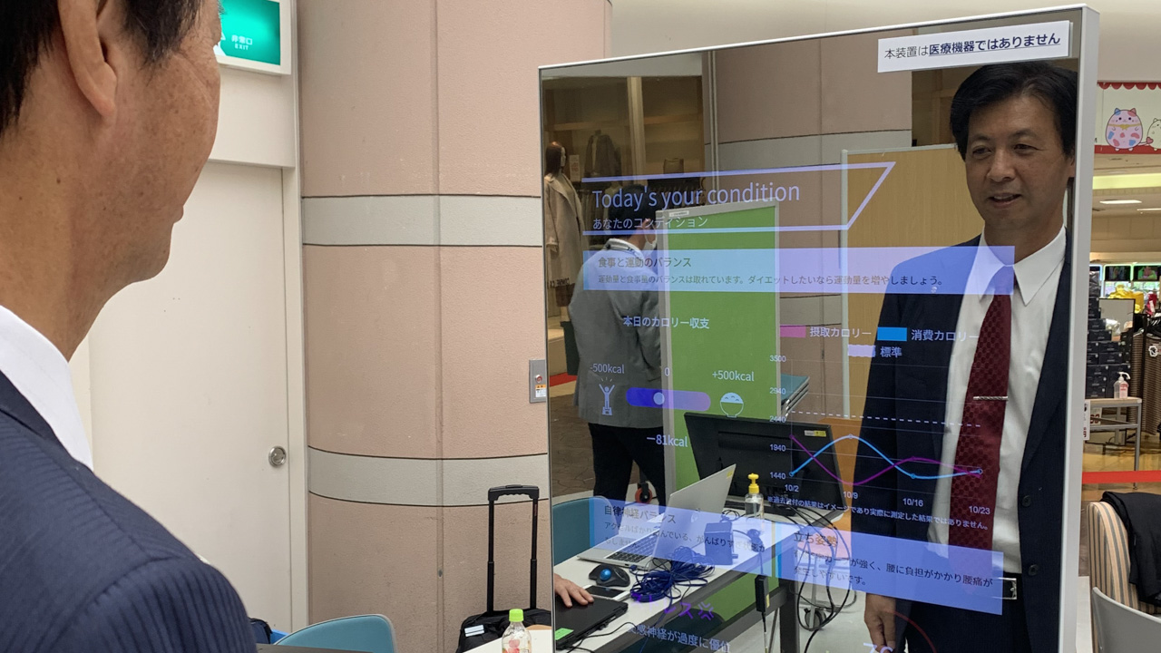荒尾市では、AI配車の相乗りタクシーのほかに、鏡の前に立つだけで健康状態がわかる「ウェルビーイングミラー」の実証実験を実施。この事業は相乗りタクシー事業などと併せて、「荒尾ウェルビーイングスマートシティ」として国土交通省の「スマートシティ先行モデルプロジェクト」に選ばれました。スマートシティのプロジェクトを進めるほかの自治体にとって手本となる事例となりました。