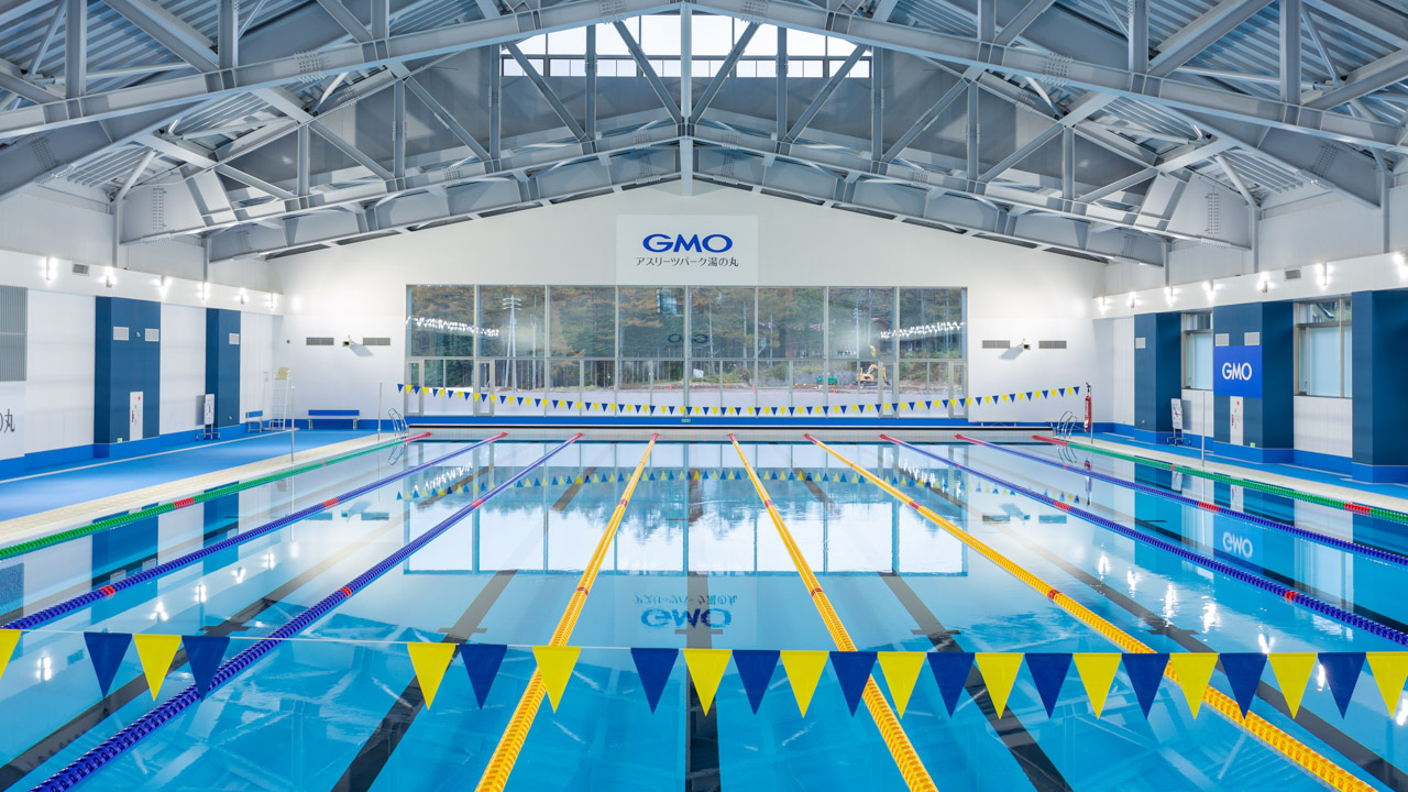 こうして、GMOアスリーツパーク湯の丸(湯の丸高原スポーツ交流施設)は、標高1730メートル~1750mのエリアで陸上や水泳の高地トレーニングができる施設としてスタートしました。全天候型のトラックやトレイルランニングコースのほかに、日本で唯一高地トレーニングができる競泳用プールを有し、宿泊施設や食堂も備えています。施設は東京2020オリンピック・パラリンピックに向けて、水泳の大橋悠依選手をはじめとするトップアスリートたちが利用し、日本のメダル獲得に貢献しました。
