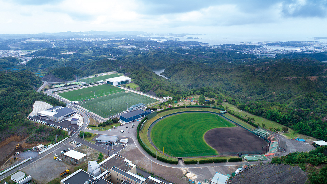 「上富田町は、隣接する白浜町や田辺市に比べて観光地が少ないこともあり、スポーツを軸にしたまちづくり、スポーツ観光事業を展開しています」と話すのは、上富田町役場振興課でまちづくりを担当する出羽正典さんです。海、景勝地、名湯にパンダと、全国に知られる観光資源をもつ近隣のまちを考慮して選んだのは、「一年を通じて温暖な気候」を活かしたスポーツによるまちづくりでした。「野球場(をはじめ)、サッカー場、ラグビー場(として使える多目的グラウンドと球技場)とスポーツサロン(ジム)などからなる、トップアスリートの利用も考慮した、上富田スポーツセンターという施設があります。住民に、最高峰のプレイを見て、感動してもらうと同時に、住民の健康増進やスポーツの関係人口増加を目的につくった施設です」。