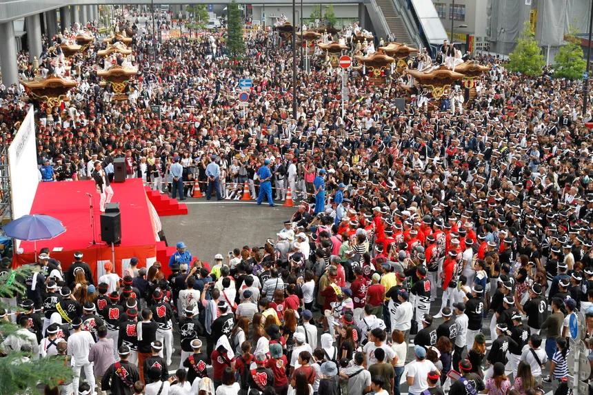 令和8年5月31日(日)開催予定 和泉市内のだんじりを一堂に集め、和泉市制施行70周年を祝う記念曳行を行います。 平成28年に、和泉市制60周年を記念して、初めて市内の本格だんじり35台が集結し、記念式典を行いました。この度、10年ぶりに、開催します。
